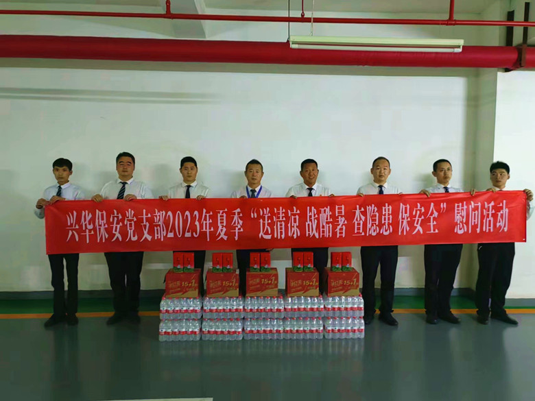 入伏以来,骄阳似火,酷热难当。为做好高温天气防暑降温工作,给奋战在一线的广大保安员送去清凉与关怀,深入将学习贯彻习近平新时代中国特色社会主义思想主题教育成效落到实处,7月13日兴华保安党支部开展了“送清凉、战酷暑、查隐患、保安全”主题党日慰问活动,为基层一线保安员们送去阵阵清凉,使一线职工充分感受到兴华保安大家庭的温暖。