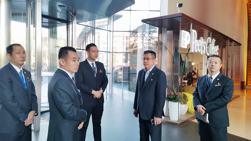 为扎实做好全国“两会”期间安全保卫工作,防范化解重大安全风险,有效提升保安队伍安全意识。3月8日上午,北京兴华保安服务有限公司总经理胡华三、常务副总经理胡华锋、党支部副书记高江一行,在副总经理胡松颜、办公室负责人杨勇的陪同下,一同前往启皓北京、正大中心等保安驻勤点开展“两会”期间安全大检查工作。