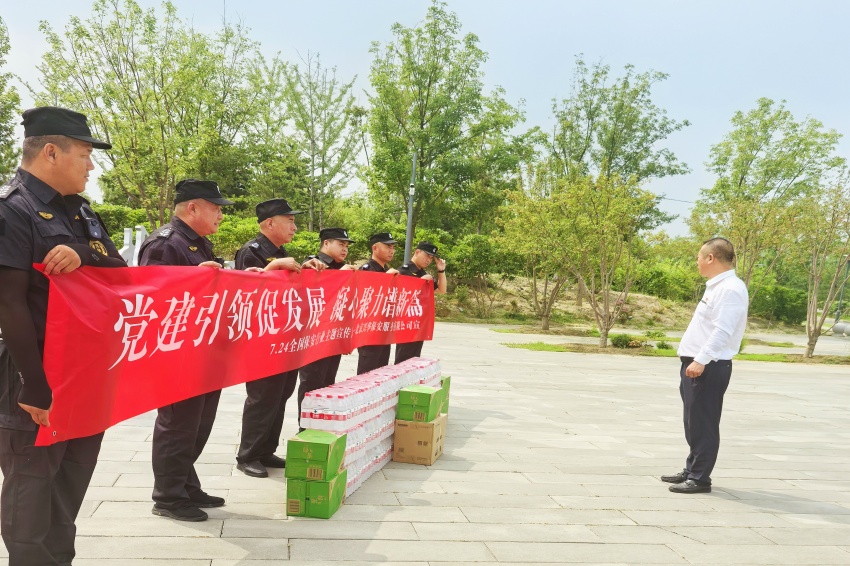 此次慰问活动,由党支部副书记高江、党支部成员张荣慧组成慰问小组,深入各个执勤点。每到一处,慰问小组都与保安员们亲切握手、交谈,关切地询问他们的工作和生活情况。 为了让基层保安员在炎炎夏日感受到清凉与关怀,慰问小组为他们送上了精心准备的防暑降温物资,这些物资不仅是一份清凉,更是党支部对保安员们深深的关爱。收到慰问品的保安员们脸上洋溢着幸福的笑容,他们纷纷表示:“感谢党支部的关心和爱护,我们一定会坚守岗位,努力工作,不辜负党组织的期望,为客户提供更加优质的安保服务 。”