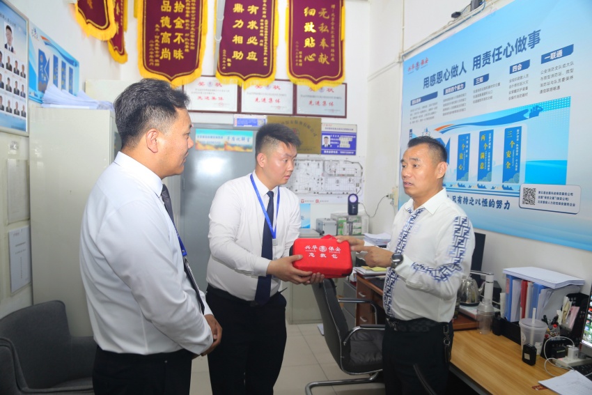 六月的骄阳似火,安全生产的警钟长鸣!为深入贯彻落实全国第24个“安全生产月”活动要求,切实保障一线员工的生命安全与健康,近日北京兴华保安服务有限公司工会组织开展了安全生产月专项检查慰问活动。公司领导班子成员常务副总经理、工会主席胡华锋在办公室负责人杨勇陪同下深入保安执勤点、工作现场,查隐患、送关怀,为安全生产保驾护航,让一线员工感受到“娘家人”的温暖与力量。