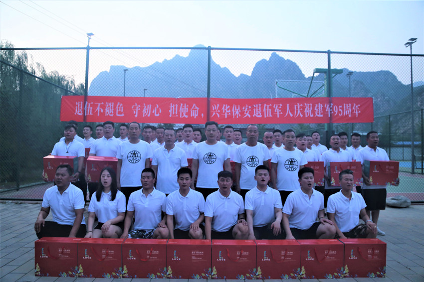 胡华三总经理代表公司向各位退役军人致以节日的问候,并指出:党领导的人民军队从无到有,从小到大,从弱到强,有着曲折而光荣的历史,为祖国和人民的解放和建设事业做出了丰功伟绩。历年来,公司高度重视人才培养,特别是复转军人队伍的培养。很多优秀军人退役后加入了兴华保安这个大家庭,大部分人能够迅速适应环境,胜任角色,发扬军人过硬作风,在各自岗位上为公司的发展作出了积极的贡献。特别是疫情防控中表现出的不怕牺牲、吃苦耐劳、艰苦拼搏、自觉奉献的精神更是让我感动。希望大家能够继续发扬听党指挥、能打胜仗、作风优良的军人本色,在各自岗位上发挥模范带头作用,全力推进公司高质量发展,再创新成绩再铸新辉煌。