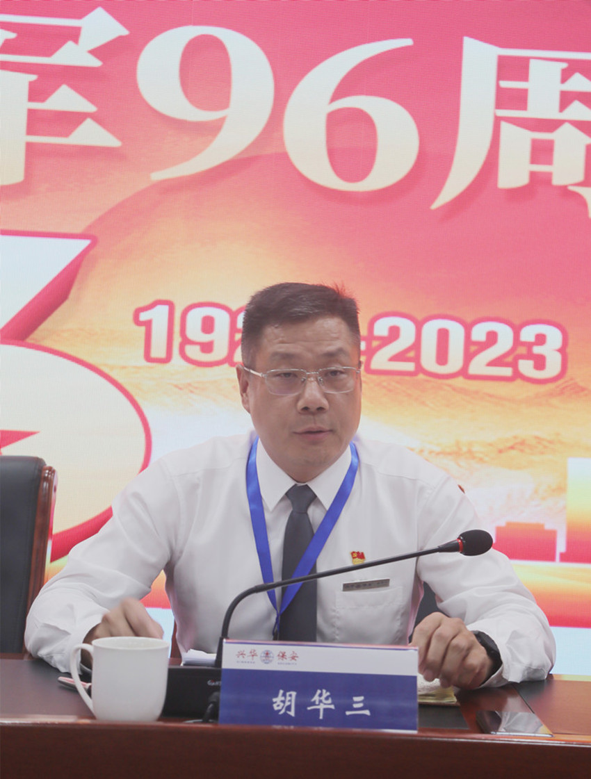胡华三总经理对广大退役军人为公司作出的贡献给予充分肯定,对大家在平凡岗位上作出的不平凡成绩表示衷心感谢。他指出:退役军人是企业的宝贵财富,是公司发展的重要人才资源,是促进企业改革、发展、稳定的重要力量。退役后,你们把实现自我人生价值融汇到兴华保安的改革发展中,在平凡的工作岗位上恪尽职守、锐意进取,体现了革命军人的优良传统,展现了兴华人真拼实干、奋勇争先的精神面貌。
