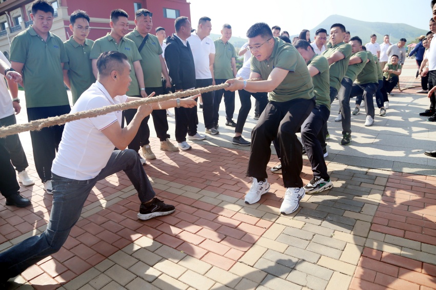 “预备——开始!”随着裁判一声令下,拔河比赛率先开战。只见各队队员紧握长绳,脚蹬地面,身体后倾,使出浑身力气往后拉。红绳在两队之间来回拉锯,像被施了魔法似的左摇右摆。有队员手上磨出了红印也不松手,有队长嗓子喊哑了还在带头鼓劲。最终,第六运营管理部代表队凭借稳扎稳打的配合,在僵持40秒后一举夺冠,队员们激动地抱在一起。